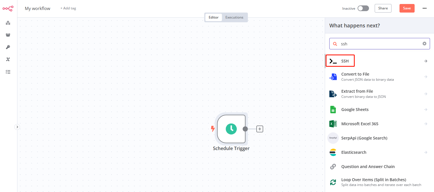 3. 接下来选择 ssh 作为工作流任务模板